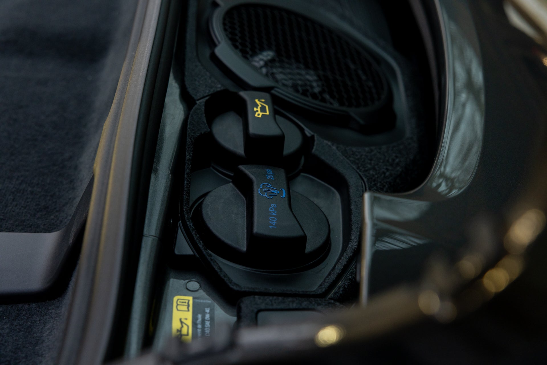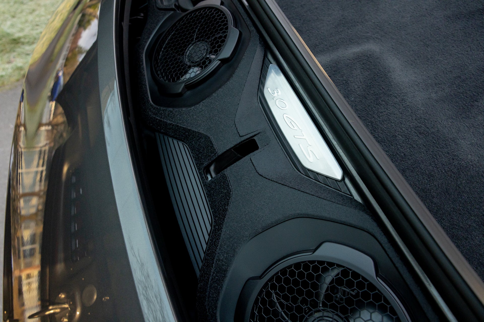 The cabin is trimmed in two-tone leather with Slate Grey surfaces and perforated seat inserts. Fourteen-way power-adjustable front seats with memory and ventilation provide long-distance comfort across extended touring, while the heated GT Sport steering wheel in leather offers a direct connection to the chassis. The Premium Package adds convenience features throughout the cabin, and a BOSE Surround Sound System handles audio duties. Front, rear, and 360-degree cameras assist with parking and maneuvering in tight spaces, addressing the practical realities of daily use.
